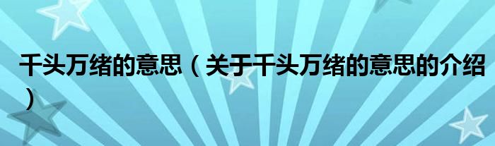 千头万绪的意思(关于千头万绪的意思的介绍)