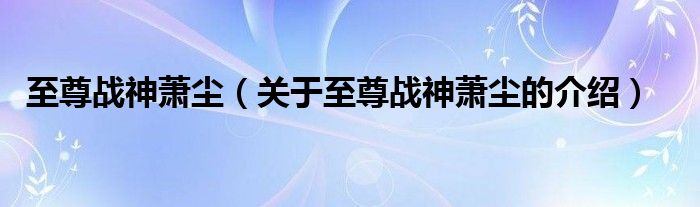 至尊战神萧尘(关于至尊战神萧尘的介绍)