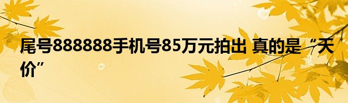 2、日前,一则“尾号888888手机号85万元拍出”引发关注。据悉,重庆尾号888888手机号法拍85万元,最高曾售341万,手机号又被拍出天价,这么贵的吗?