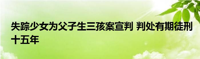 大家好.我是互联百科的羽儿,现在为大家解决以上失踪少女为父子生三孩案宣判 判处有期徒刑十五年的问题.