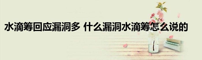 大家好.我是互联百科的羽儿,现在为大家解决以上水滴筹回应漏洞多 什么漏洞水滴筹怎么说的的问题.