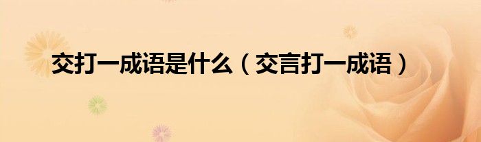 大家好,小晋来为大家解答以下问题,关于交打一成语是什么,交言打一成语很多人还不知道,今天让我们一起来看看吧!