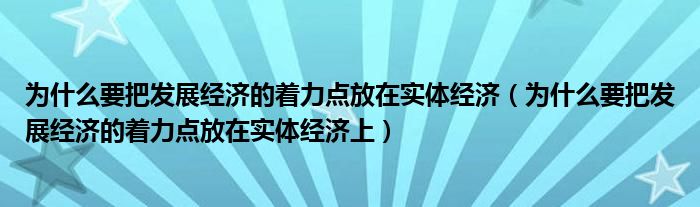 关于为什么要把发展经济的着力点放在实体经济,为什么要把发展经济的着力点放在实体经济上这个很多人还不知道,今天菲菲来为大家解答以上的问题,现在让我们一起来看看吧!