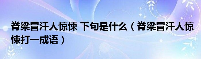 关于脊梁冒汗人惊悚 下句是什么,脊梁冒汗人惊悚打一成语这个很多人还不知道,今天菲菲来为大家解答以上的问题,现在让我们一起来看看吧!