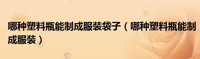 关于哪种塑料瓶能制成服装袋子,哪种塑料瓶能制成服装这个很多人还不知道,今天菲菲来为大家解答以上的问题,现在让我们一起来看看吧!