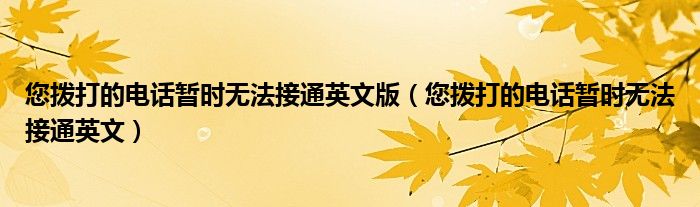 关于您拨打的电话暂时无法接通英文版,您拨打的电话暂时无法接通英文这个很多人还不知道,今天菲菲来为大家解答以上的问题,现在让我们一起来看看吧!