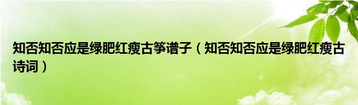 知否知否应是绿肥红瘦古筝谱子(知否知否应是绿肥红瘦古诗词)
