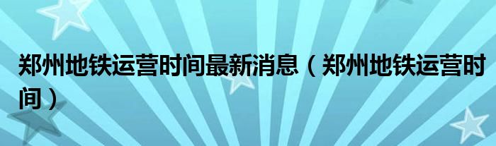 关于郑州地铁运营时间最新消息,郑州地铁运营时间这个很多人还不知道,今天菲菲来为大家解答以上的问题,现在让我们一起来看看吧!