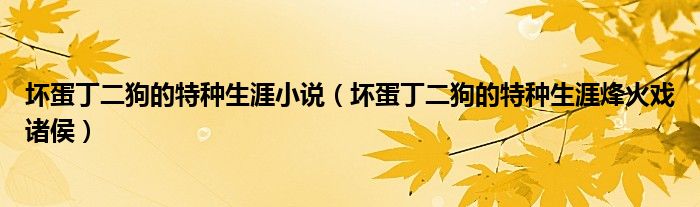 关于坏蛋丁二狗的特种生涯小说,坏蛋丁二狗的特种生涯烽火戏诸侯这个很多人还不知道,今天菲菲来为大家解答以上的问题,现在让我们一起来看看吧!