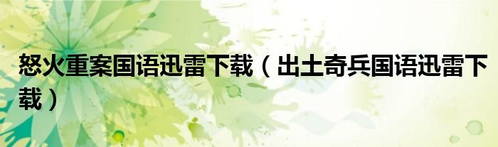 关于怒火重案国语迅雷下载,出土奇兵国语迅雷下载这个很多人还不知道,今天菲菲来为大家解答以上的问题,现在让我们一起来看看吧!