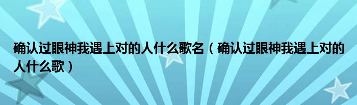 关于确认过眼神我遇上对的人什么歌名,确认过眼神我遇上对的人什么歌这个很多人还不知道,今天菲菲来为大家解答以上的问题,现在让我们一起来看看吧!
