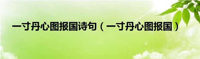 关于一寸丹心图报国诗句,一寸丹心图报国这个很多人还不知道,今天菲菲来为大家解答以上的问题,现在让我们一起来看看吧!