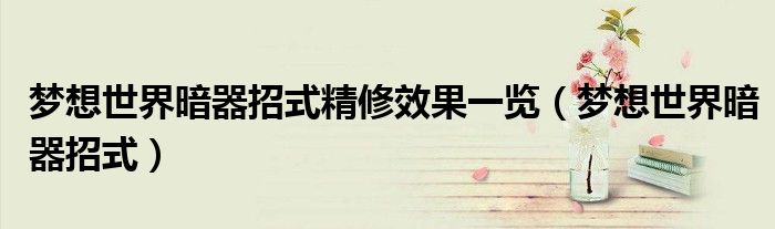 梦想世界暗器招式精修效果一览(梦想世界暗器招式)