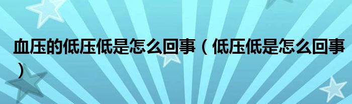 血压的低压低是怎么回事(低压低是怎么回事)