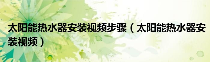 太阳能热水器安装视频步骤(太阳能热水器安装视频)