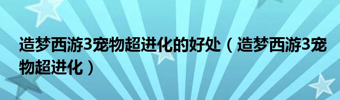 关于造梦西游3宠物超进化的好处,造梦西游3宠物超进化这个很多人还不知道,今天菲菲来为大家解答以上的问题,现在让我们一起来看看吧!