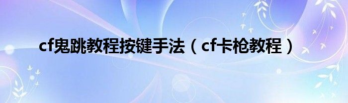 大家好,小小来为大家解答以下问题,cf鬼跳教程按键手法,cf卡枪教程很多朋友还不知道,现在让我们一起来看看吧!