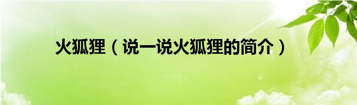 火狐狸(说一说火狐狸的简介)