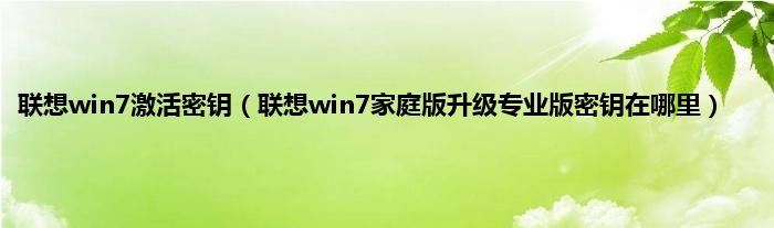 大家好,综合小编来为大家讲解下联想win7激活密钥,联想win7家庭版升级专业版密钥在哪里这个很多人还不知道,现在让我们一起来看看吧!