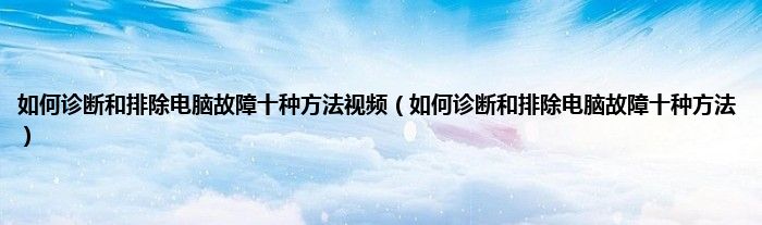 大家好,综合小编来为大家讲解下如何诊断和排除电脑故障十种方法视频,如何诊断和排除电脑故障十种方法这个很多人还不知道,现在让我们一起来看看吧!
