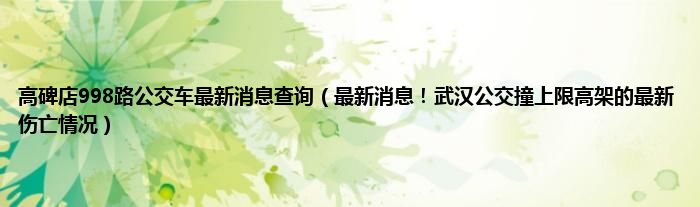 大家好,综合小编来为大家讲解下。高碑店998路公交车最新消息查询,最新消息!武汉公交撞上限高架的最新伤亡情况这个很多人还不知道,现在让我们一起来看看吧!