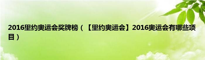本文2016里约奥运会奖牌榜,【里约奥运会】2016奥运会有哪些项目到此分享完毕,希望对大家有所帮助。