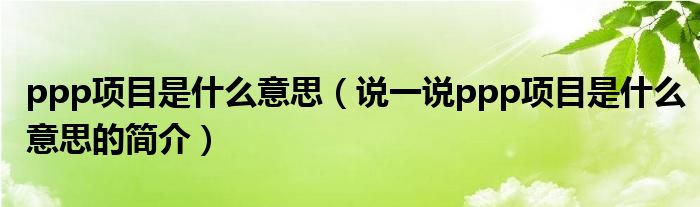 ppp项目是什么意思(说一说ppp项目是什么意思的简介)