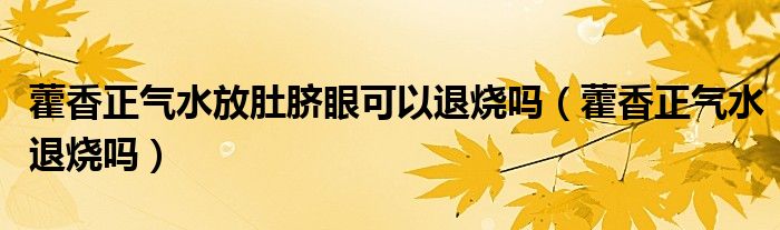 大家好,乐天来为大家解答以下的问题,藿香正气水放肚脐眼可以退烧吗,藿香正气水退烧吗很多人还不知道,现在让我们一起来看看吧!