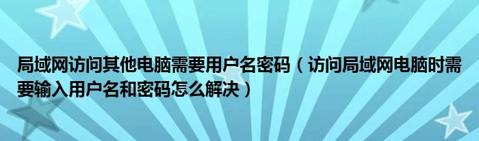 局域网访问其他电脑需要用户名密码(访问局域网电脑时需要输入用户名和密码怎么解决)