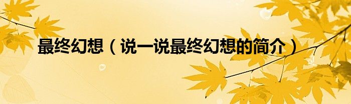 夏弥来为大家解答以下的问题,最终幻想,说一说最终幻想的简介,现在让我们一起来看看吧!
