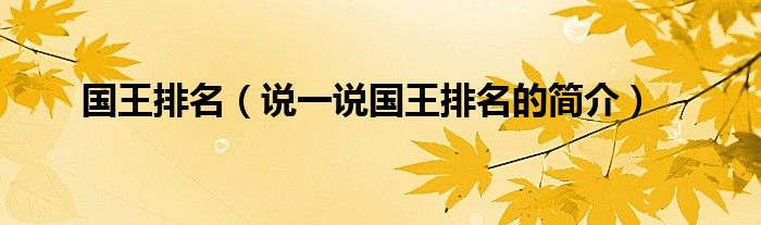 国王排名(说一说国王排名的简介)