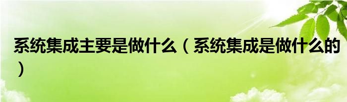 系统集成主要是做什么(系统集成是做什么的)