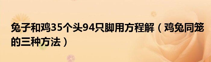 兔子和鸡35个头94只脚用方程解(鸡兔同笼的三种方法)