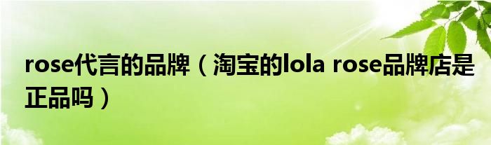 rose代言的品牌(淘宝的lola rose品牌店是正品吗)