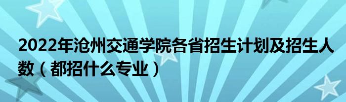 2022年沧州交通学院各省招生计划及招生人数(都招什么专业)