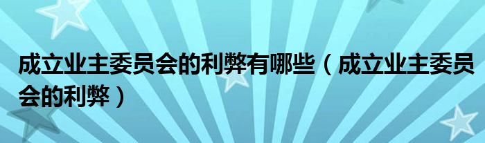 成立业主委员会的利弊有哪些(成立业主委员会的利弊)