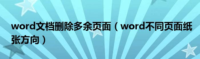 word文档删除多余页面(word不同页面纸张方向)