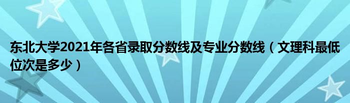大家好,乐儿来为大家解答以下问题,东北大学2021年各省录取分数线及专业分数线,文理科最低位次是多少很多人还不知道,现在让我们一起来看看吧!