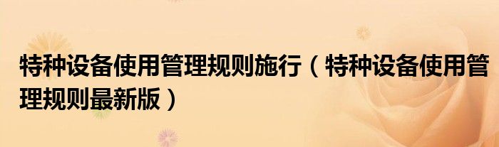 关于特种设备使用管理规则施行,特种设备使用管理规则最新版这个很多人还不知道,今天菲菲来为大家解答以上的问题,现在让我们一起来看看吧!