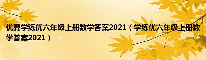 关于优翼学练优六年级上册数学答案2021,学练优六年级上册数学答案2021这个很多人还不知道,今天菲菲来为大家解答以上的问题,现在让我们一起来看看吧!