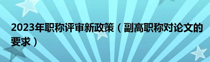 关于2023年职称评审新政策,副高职称对论文的要求这个很多人还不知道,今天菲菲来为大家解答以上的问题,现在让我们一起来看看吧!