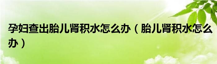 孕妇查出胎儿肾积水怎么办(胎儿肾积水怎么办)