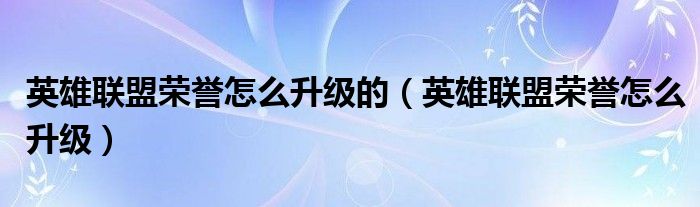 英雄联盟荣誉怎么升级的(英雄联盟荣誉怎么升级)