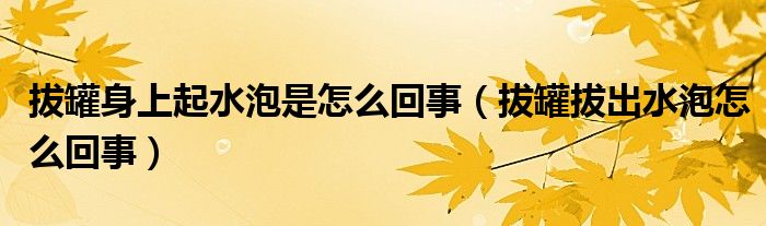 大家好,乐天来为大家解答以下的问题,拔罐身上起水泡是怎么回事,拔罐拔出水泡怎么回事很多人还不知道,现在让我们一起来看看吧!