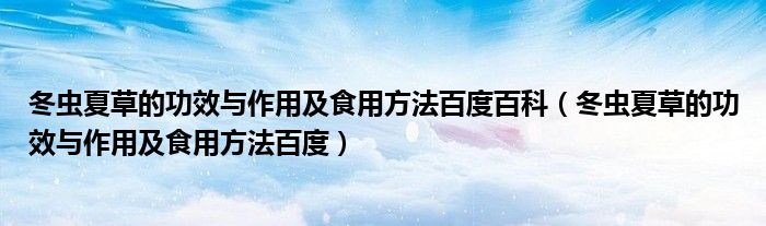关于冬虫夏草的功效与作用及食用方法百度百科,冬虫夏草的功效与作用及食用方法百度这个很多人还不知道,今天菲菲来为大家解答以上的问题,现在让我们一起来看看吧!
