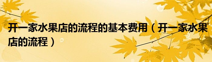 开一家水果店的流程的基本费用(开一家水果店的流程)