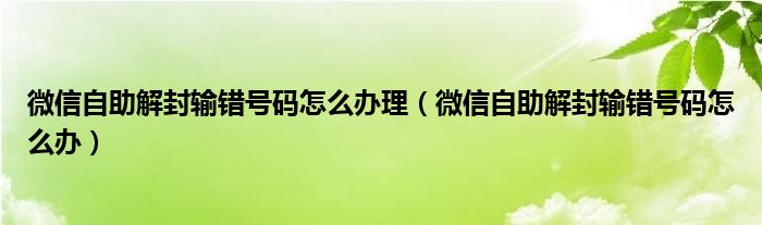 微信自助解封输错号码怎么办理(微信自助解封输错号码怎么办)