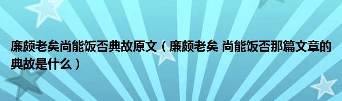 廉颇老矣尚能饭否典故原文(廉颇老矣尚能饭否那篇文章的典故是什么)