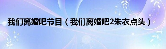 我们离婚吧节目(我们离婚吧2朱衣点头)