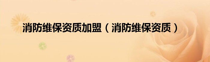 消防维保资质加盟(消防维保资质)